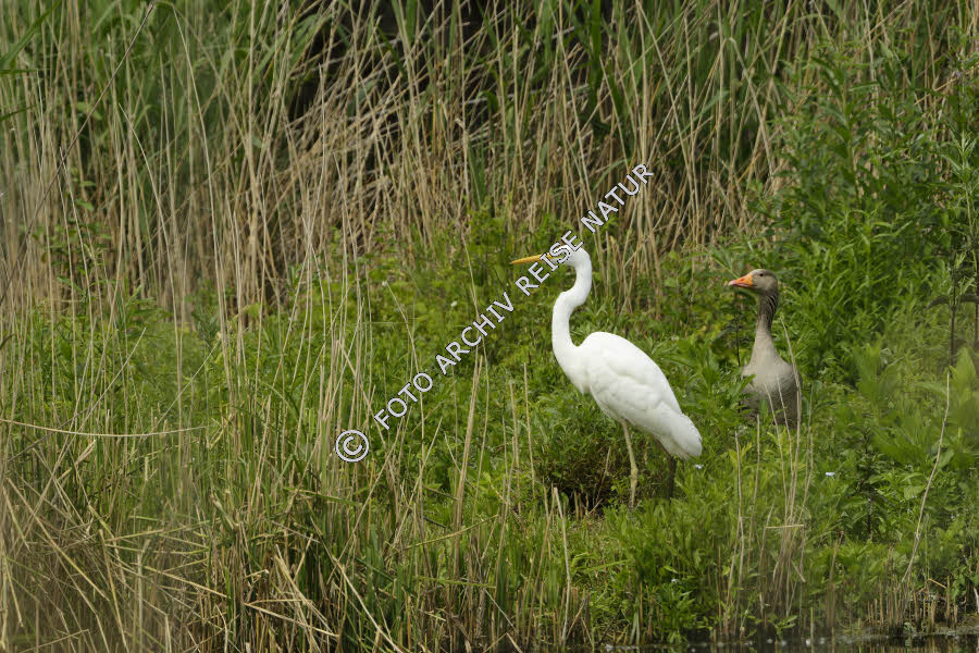 Silberreiher und Graugans im Naturschutzgebiet Garstad