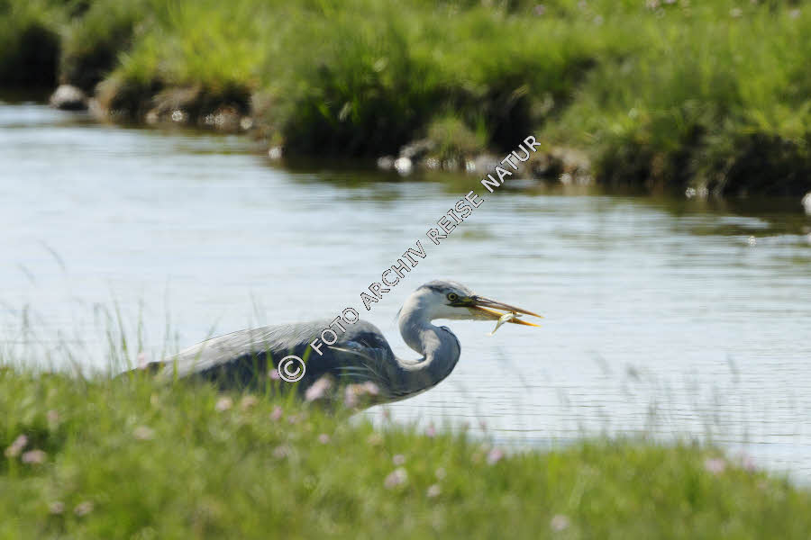 Ereignis, Fangen, Fauna, Fischen, Futtersuche, Geschehen, Gewässer, Graureiher, Ardea cinera, Landschaft, Meer, Ostsee, Priel, Reiher, Suche, Tätigkeit, Vogel, Öresund,