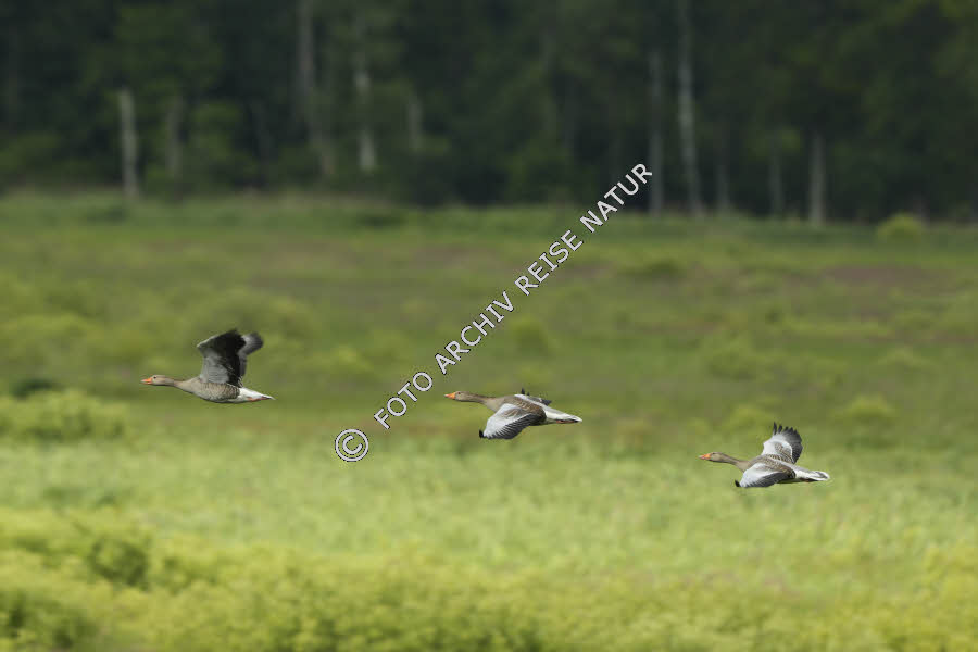 Keywords: Entenvögel, Fauna, Graugans, Anser anser, Gruppe, Husebymaden, Naturschutzgebiet, Ort, Schweden, Småland, Vogel, Vogelflug,