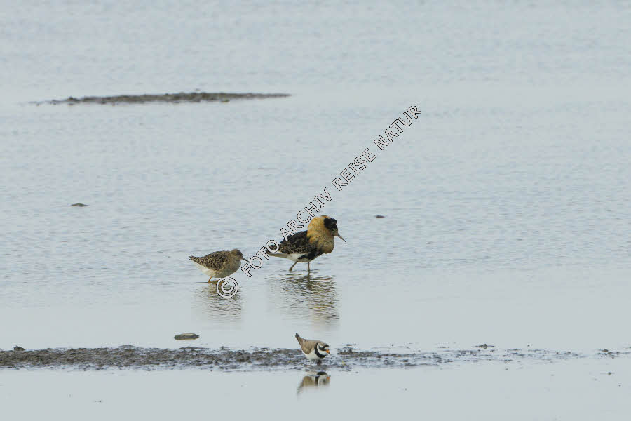 Kampfläufer im Flachwasser des Strandsees am Grünen Brink