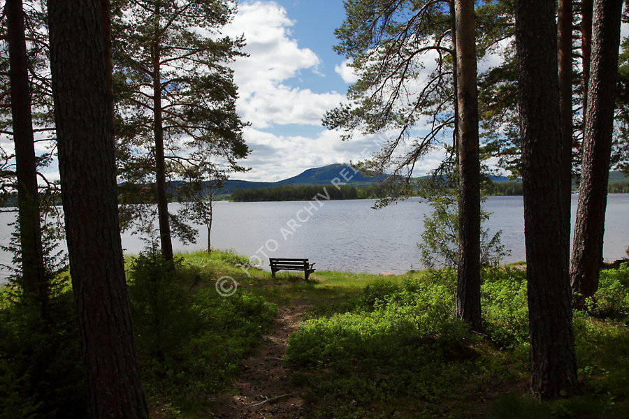 Keywords: Bank, Baum, Flora, Gegenstand, Gewässer, Holzbank, Kiefer, Pinus, Kieferngewächs, Kiefernwald, Landschaft, Möbel, Nadelwald, See, Siljan, Wald,