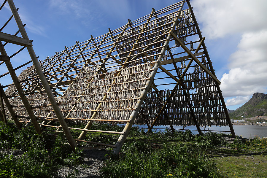 Austvågøya, Gegenstand, Gestell, Lebensmittel, Lofoten, Nahrung, Nordland, Norwegen, Stockfisch, Stockfisch-Trockengestell, Svolvær,