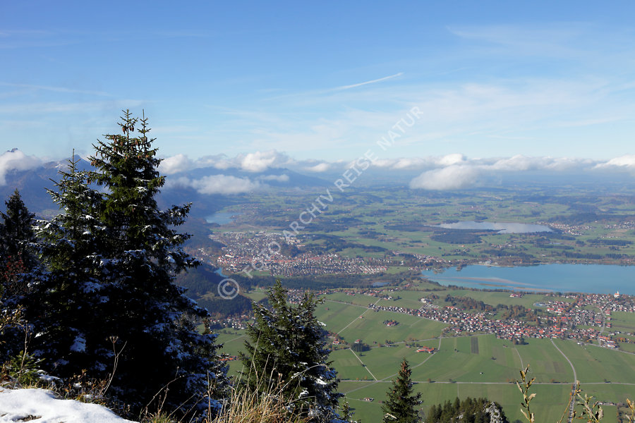 Keywords: Allgäu, Aussichtspunkt, Bayern, Berg, Deutschland, Forggensee, Gewässer, Landschaft, Ort, Schwangau, See, Tegelberg,