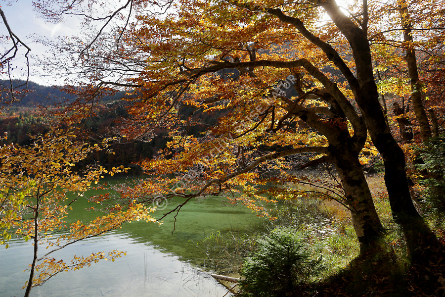 Allgäu, Alpsee, Baum, Bayern, Bergsee, Buche, Fagus, Buchengewächs, Deutschland, Farbe, Flora, Gewässer, Landschaft, Rotbuche, Fagus sylvatica, Schwangau, See, bunt,