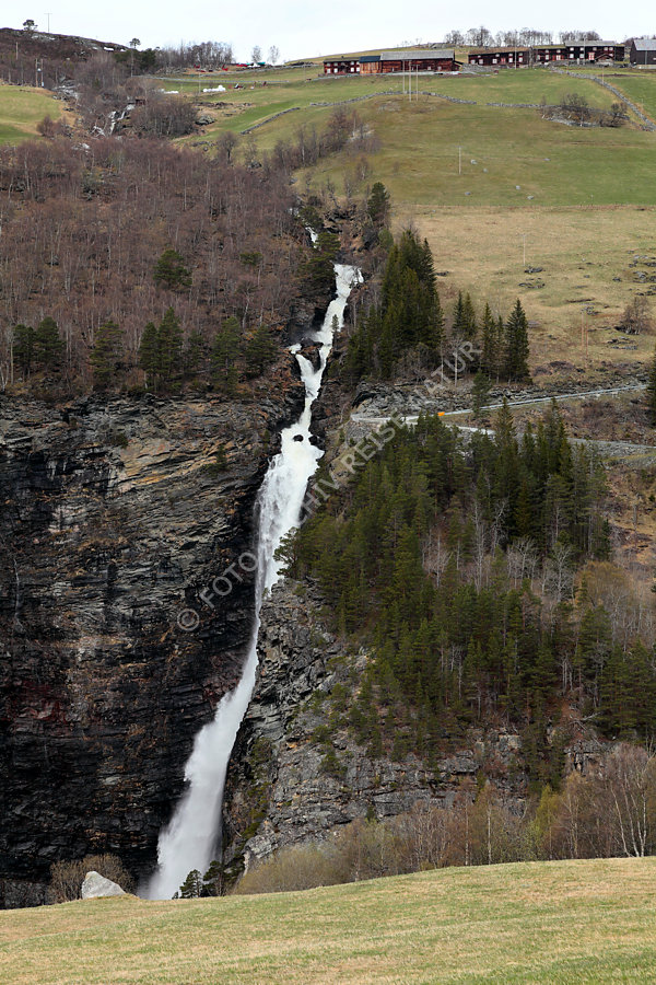 Bergdorf, Dorf, Felsen, Felswand, Gewässer, Gjøra, Kulturlandschaft, Landschaft, Material, Møre og Romsdal, Norwegen, Schlucht, Sennerei, Stein, Svøufallet, Wasserfall, Weiler, Åmotan,