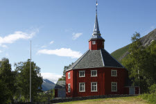 Achteckige Holzkirche in Lønset