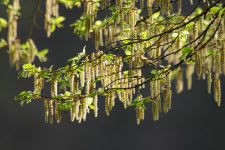 Haselkätzchen (Corylus) im Gegenlicht