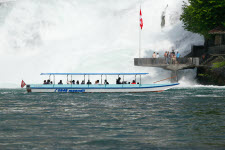 Tourboot vor dem Rheinfall und Aussichtsplattform