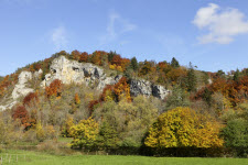 Kalkfelsen im herbstlichen Naturpark Obere Donau