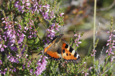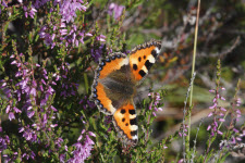 Kleiner Fuchs auf Besenheide im Nationalpark Store Mosse
