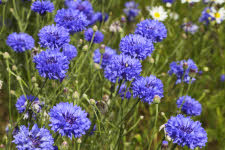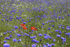 Blumenwiese mit Kornblumen und Klatschmohn auf Öland