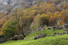 Herbstliches Alpenvorland bei Brunnen, Blick auf die Allgäuer Alpen mit Alpspitz