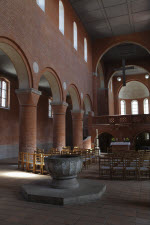 Innenansicht der Kirche von Habo mit Haupt- und Seitenschiffen