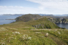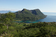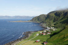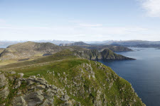 Blick vom Sjonfjellet auf das Nordmeer und Insel Handnesøya